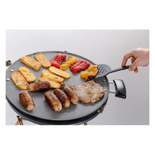 Piastra di cottura in alluminio con trattamento antiaderente PTFE ad alta resistenza EFFETTO PIETRA, provvista di due pratiche maniglie.