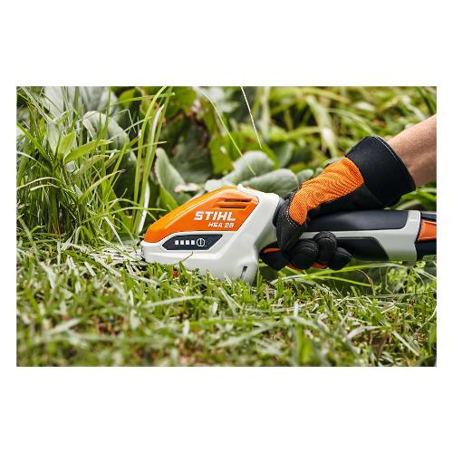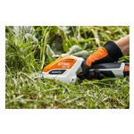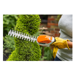 Rifinitore a batteria compatto, con coltelli per potare e curare piccole siepi sempreverdi e piante ornamentali a foglia piccola. Coltelli per cespugli con geometria stihl ottimizzata per risultati eccellenti. Dispone anche