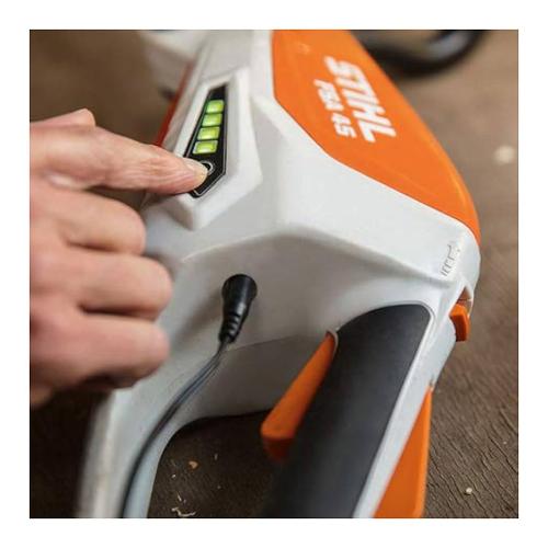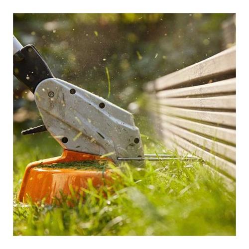 Di rifinitura e pulizia vicino casa. Batteria agli ioni di litio integrata (36 wh) con indicazione dello stato di carica, asta e impu-gnatura ad archetto regolabili senza l’uso di utensili, angolo di lavoro del gruppo falciante regolabile anche per tagli angolari verticali, cambio semplice tra lama polycut e fili falcianti senza sostituzione della testina falciante, archetto distanziatore. Tempo di carica della batteria 145 min / 210 min (80 % / 100 %).
