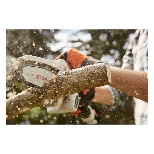 Versatile potatore a batteria per piccoli rami, per la potatura di alberi e cespugli, per ridurre a piccoli pezzi il materiale tagliato e per lavori di carpenteria. Con catena pm3 1⁄4“
