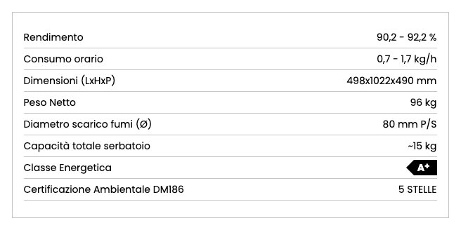 Giusy Plus 5.0 è una stufa a pellet canalizzata dal design classico e versatile, rivestita in acciaio verniciato con top in maiolica e con porta fuoco, focolare e braciere in ghisa. La ventilazione ambiente è gestibile con funzione Pro Air SetUp che consente di scegliere la velocità del ventilatore tra diverse modalità garantendo sempre il miglior comfort.