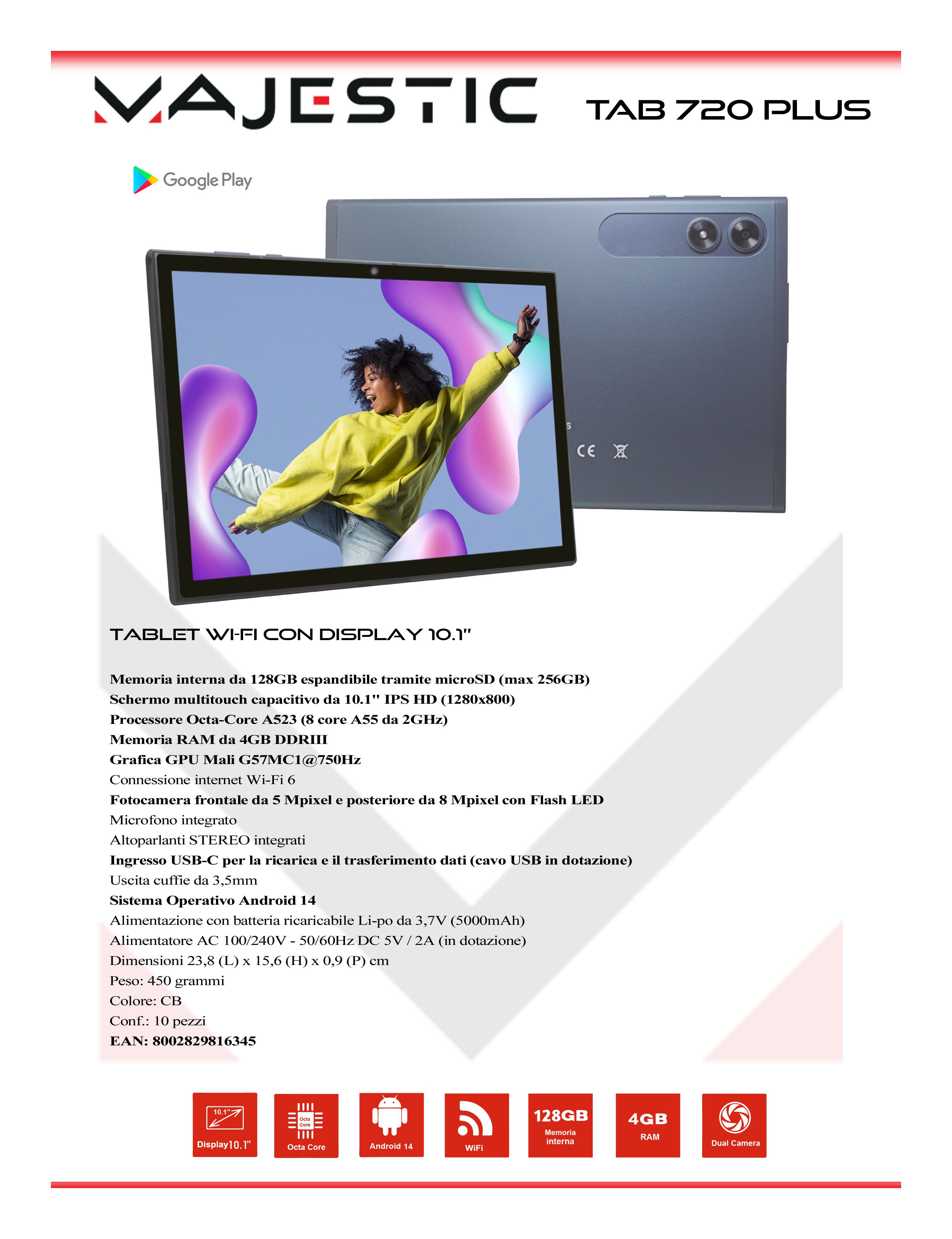 Tablet 10,1" TAB 720 PLUS WiFi Blue ( 128GB Ram 4GB 5000mAh ) 114720 CB