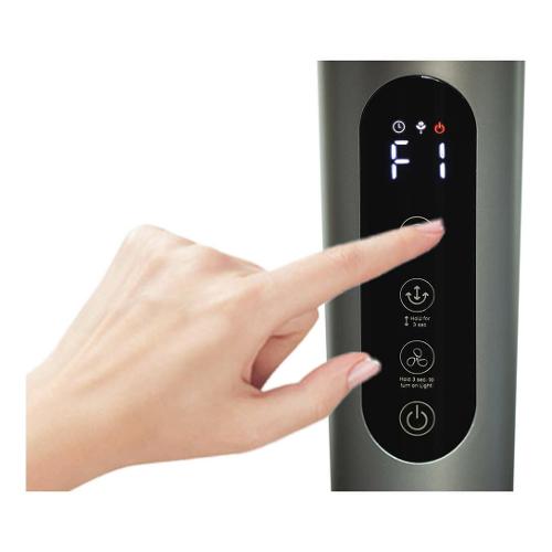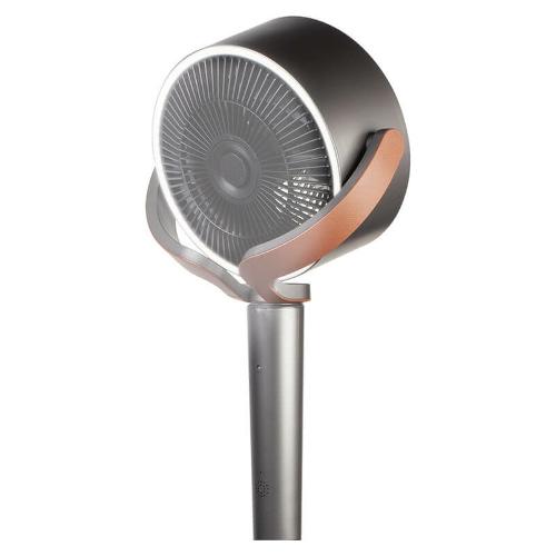 Circolatore d’aria con telecomando e luce ambientale. Potente flusso d’aria. Altezza regolabile 95-115 cm. 12 velocità, timer 12 ore e pannello comandi touch. Oscillazione 3D: oscillazione orizzontale e verticale automatica. Testa inclinabile fino a 90° per una migliore circolazione dell’aria all’interno degli ambienti. Ionizzatore e diffusore di essenze. Finiture in similpelle e inserti color rame.