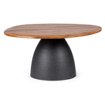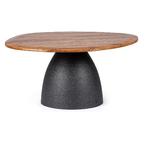 Top in legno di mango con forma irregolare,con verniciatura a base d'acqua e finitura finale a base di nitrocellulosa. Base in acciaio verniciato a polvere epossidica effetto materico
