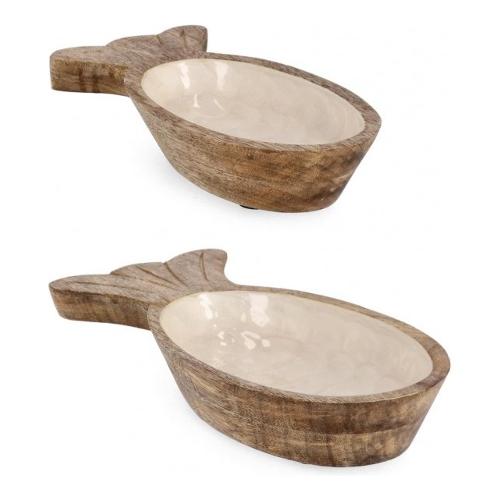 Set coppette Legno 2 pz Pesce KNOSSOS Bianco e Legno 0550903