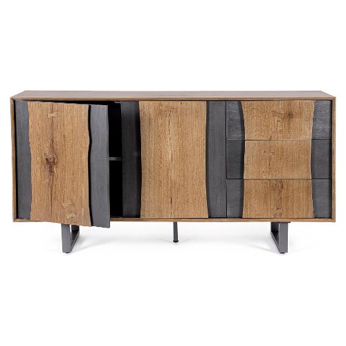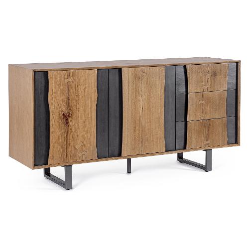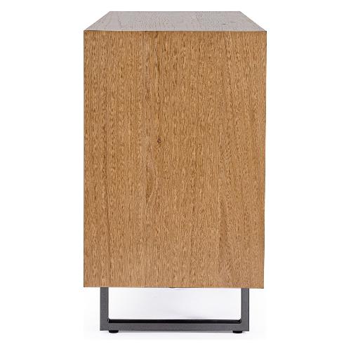 MDF impiallacciato rovere. Finitura naturale con vernice a base d'acqua. Vano ante comprensivo di mensola. Interno ante e cassetti di colore antracite con chiusura ammortizzata in acciaio. Gambe in acciaio verniciate a polvere epossidica