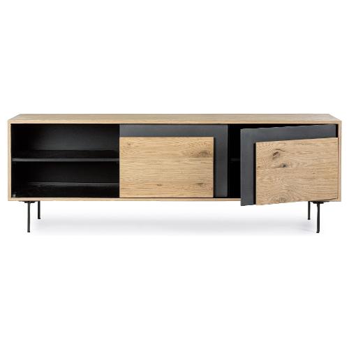 MDF impiallacciato rovere. Finitura naturale con vernice a base d'acqua. Vano porte comprensivo di mensola. Gambe in acciaio verniciate a polvere epossidica