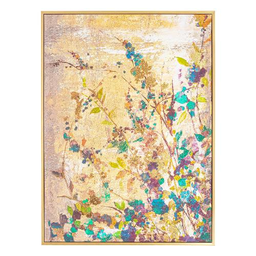 Stampa su tela dipinta a mano. Struttura in legno di pino