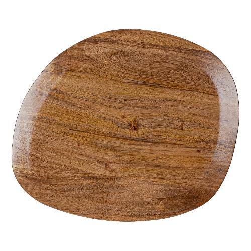 Top in legno di mango con forma irregolare,con verniciatura a base d'acqua e finitura finale a base di nitrocellulosa. Base in acciaio verniciato a polvere epossidica effetto materico