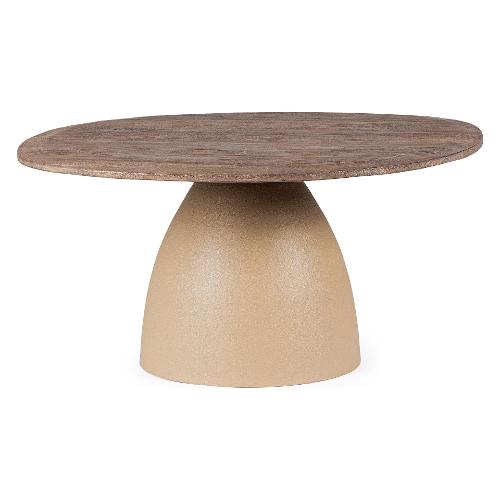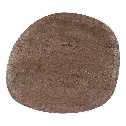 Top in legno di mango con forma irregolare,con verniciatura a base d'acqua e finitura finale a base di nitrocellulosa. Base in acciaio verniciato a polvere epossidica effetto materico