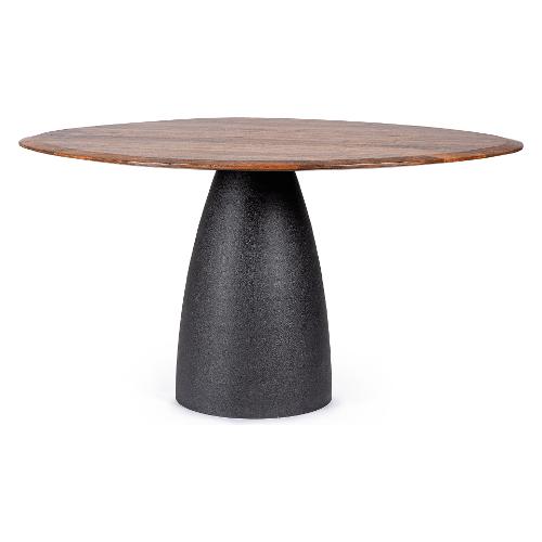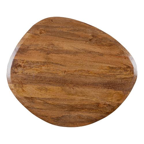 Top in legno di mango con forma irregolare,con verniciatura a base d'acqua e finitura finale a base di nitrocellulosa. Base in acciaio verniciato a polvere epossidica effetto materico