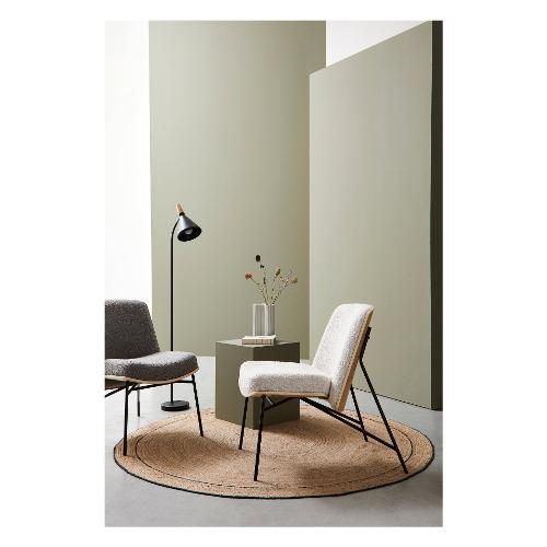 Acciaio verniciato a polvere e legno di pino. Lunghezza totale cavo 1,85m. Distanza tra lampada e interruttore: 50 cm