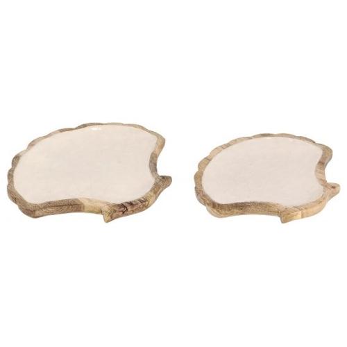 Set 2 vassoi a conchiglia 25x23x1,5h e 30x25x1,5h realizzati in legno di mango con interno smaltato