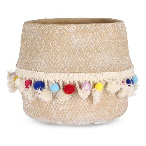 Vaso cemento (23x20cm) tondo con ponpon VENEZUELA Beige multicolore 0143238