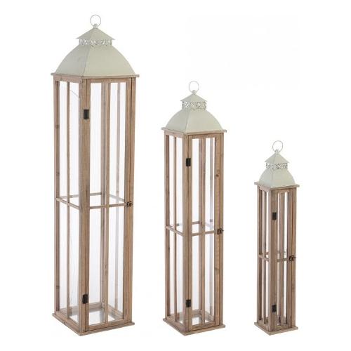 Set3 lanterna valto nat/verde legno di abete, vetro e metallo 15,5x15,5x87h; 22x22x114h; 30x30x144h