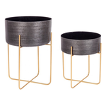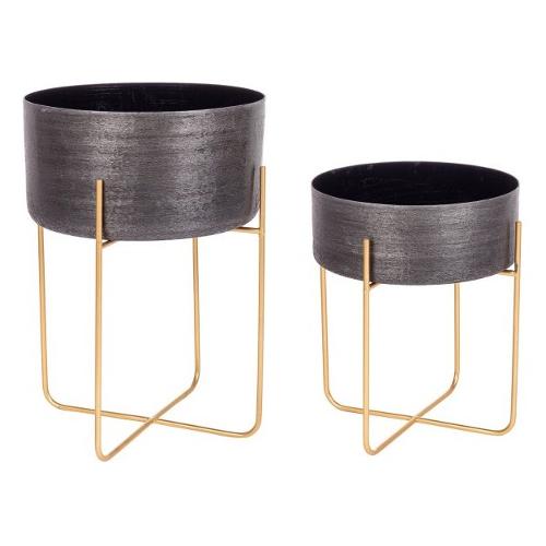 Set porta vasi piante 2 pz alluminio VARANASI Nero e Oro 0182955