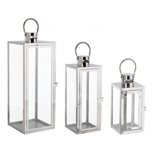 Set3 lanterna isolde argento acciaio inossidabile 55%, vetro 45% 10x10x22.5h; 14x14x39.5h; 18x18x50.5h