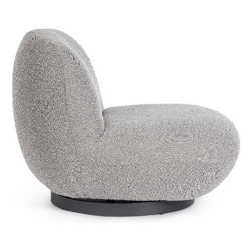 Struttura in legno compensato. Rivestimento in Poliestere effetto bouclé. Densità imbottitura seduta 22kg/m3 schienale 20kg/m3. Non sfoderabile. Base girevole 360° in acciaio verniciato a polvere epossidica