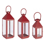 Set3 lanterna lucinda rosso metallo (verniciato a polvere) e vetro. 11x10x25h; 15.5x15x40h; 19.5x19x55h
