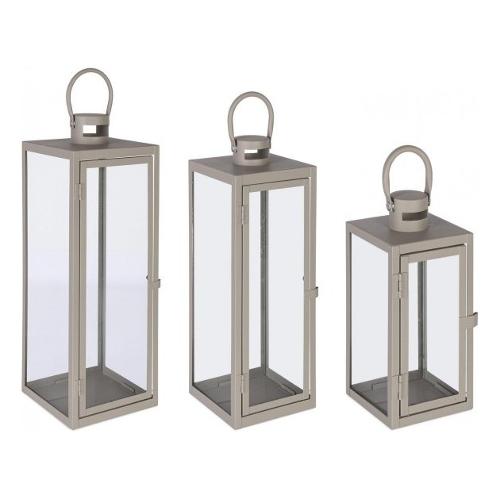 Set3 lanterna azenor grigio metallo (verniciato a polvere) e vetro. 10x10x22.5h; 14x14x39.5h; 18x18x50.5h