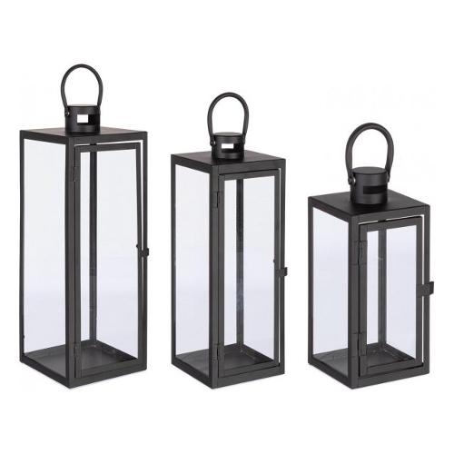 Set3 lanterna azenor nero metallo (verniciato a polvere) e vetro. 10x10x22.5h; 14x14x39.5h; 18x18x50.5h