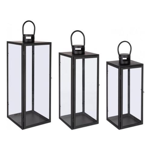 Set3 lanterna lior nero metallo (verniciato a polvere) e vetro. 17x16x40.5h; 22x21x53.5h; 26x25x65h
