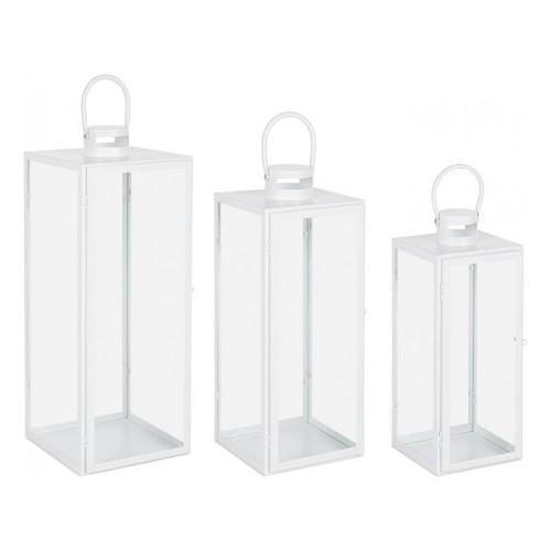 Set3 lanterna lior bianco metallo (verniciato a polvere) e vetro. 17x16x40.5h; 22x21x53.5h; 26x25x65h