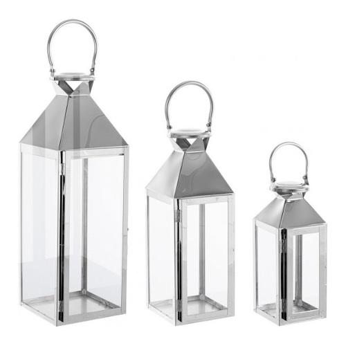 Set3 lanterna flurry argento acciaio inossidabile 55%, vetro 45% 10x10x27h; 14x14x40h; 18x18x53h