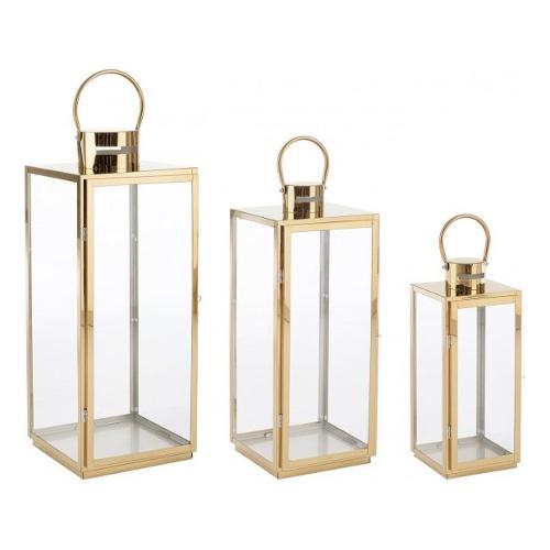 Set3 lanterna alban oro acciaio inossidabile 55%, vetro 45% 17x16x40.5h; 22x21x53.5h; 26x25x65h