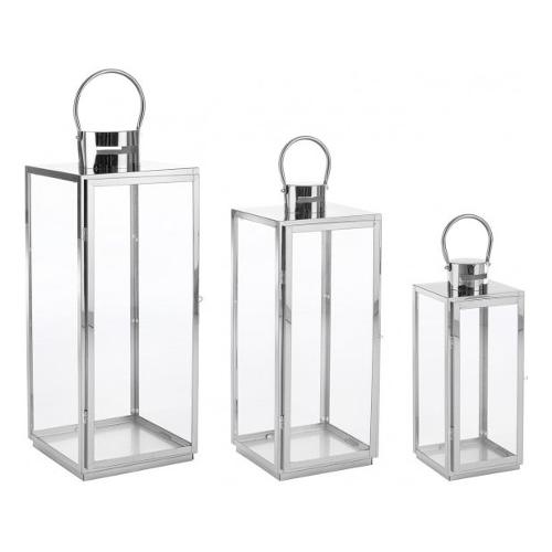 Set3 lanterna alban argento acciaio inossidabile 55%, vetro 45% 17x16x40.5h; 22x21x53.5h; 26x25x65h