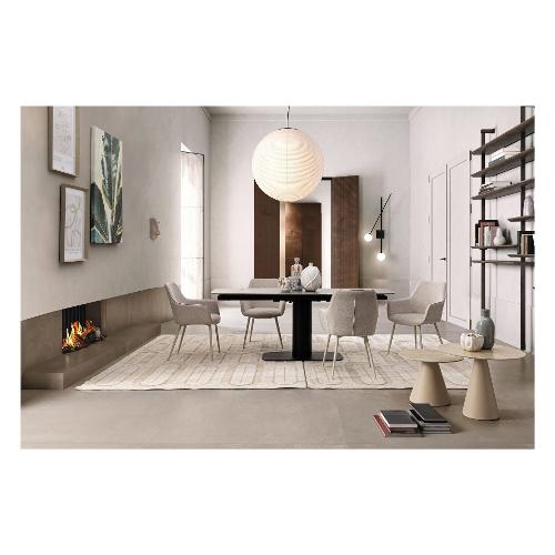 Struttura in acciaio. Gambe in acciaio verniciate a polvere epossidica. Imbottitura in schiuma poliuretanica. Rivestimento in 100% Poliestere