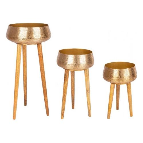 Set porta vasi piante 3 pz alluminio VARANASI Oro 0182958