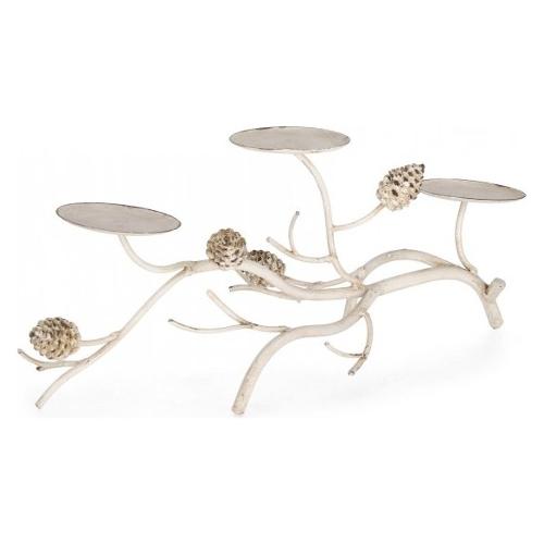 Porta candela (37x10,5x18cm) 3F con Pigne e Bacche DEMETRA Bianco 0185263