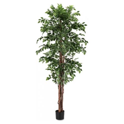 Pianta ficus c-vaso 2480foglie h210 foglie in tessuto, tronco in legno di eucalipto, vaso in plastica, contenuto vaso in cemento per garantire stabilita' ø90x210h