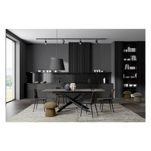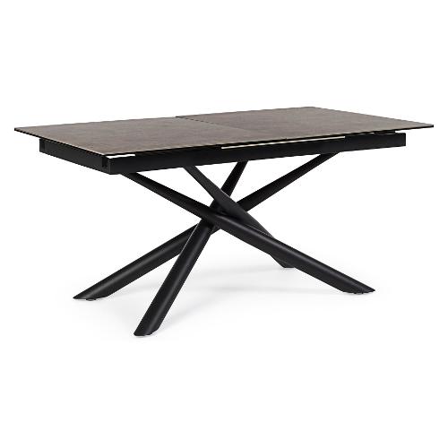 Struttura in acciaio verniciato a polvere epossidica. Piano in ceramica (5 mm) con supporto in vetro temperato (8mm)