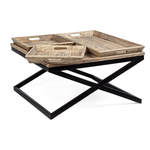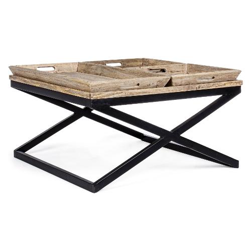 Struttura in acciaio, piano in legno di mango. Articolo provvisto di tre vassoi estraibili
