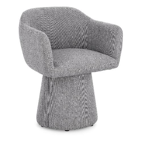 Base gambe in compensato, schienale in acciaio. Seduta girevole 180° con meccanismo di ritorno, in acciaio verniciato a polvere e compensato. Imbottitura in schiuma poliuretanica densità seduta 22 kg/m3 schienale 30kg/m3. Rivestimento in 97% Poliestere 3% Acrilico