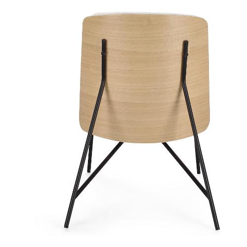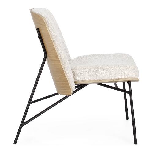 Struttura in compensato. Gambe in acciaio verniciato a polvere. Imbottitura in schiuma poliuretanica. Rivestimento in 95% Poliestere 5% Acrilico effetto bouclé