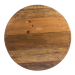 Base originale riciclata in acciaio, piano in legno riciclato. Finitura a base di nitrocellulosa. Il legno riciclato prevede in produzione ritagli di legno a copertura dei fori originariamente presenti nel prodotto. Dato l'utilizzo di diverse tipologie di legno, eventuali fessurazioni sono da considerarsi come caratteristica naturale di questo articolo