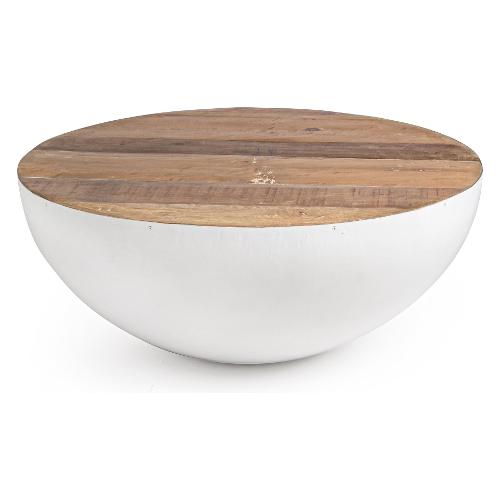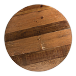 Base originale riciclata in acciaio, piano in legno riciclato. Finitura a base di nitrocellulosa. Il legno riciclato prevede in produzione ritagli di legno a copertura dei fori originariamente presenti nel prodotto. Dato l'utilizzo di diverse tipologie di legno, eventuali fessurazioni sono da considerarsi come caratteristica naturale di questo articolo