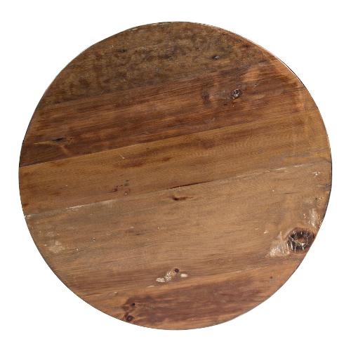 Base originale riciclata in acciaio, piano in legno riciclato. Finitura a base di nitrocellulosa. Il legno riciclato prevede in produzione ritagli di legno a copertura dei fori originariamente presenti nel prodotto. Dato l'utilizzo di diverse tipologie di legno, eventuali fessurazioni sono da considerarsi come caratteristica naturale di questo articolo
