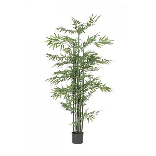 Pianta bamboo c-vaso h190 foglie in tessuto di raso, tronco in legno di bamboo, metallo, vaso in plastica, contenuto vaso in cemento per garantire stabilita'. ø90x190h