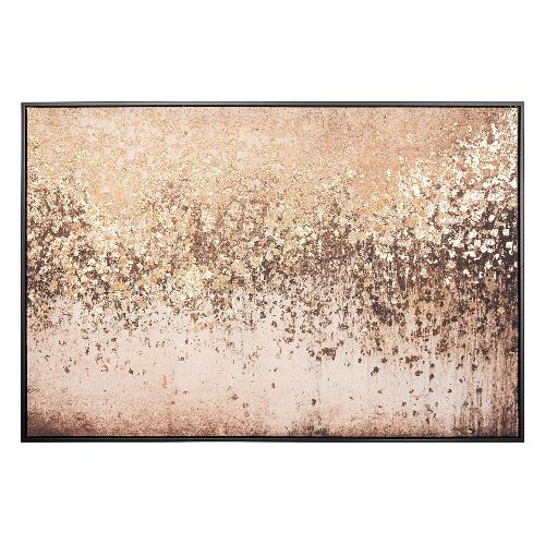 Stampa su tela con applicazioni ad olio e fogli dorati