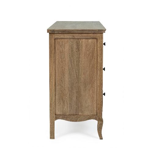 Struttura in legno di mango, schienale e fondo cassetti in MDF. Finitura con vernice a base d'acqua. Maniglie in ghisa
