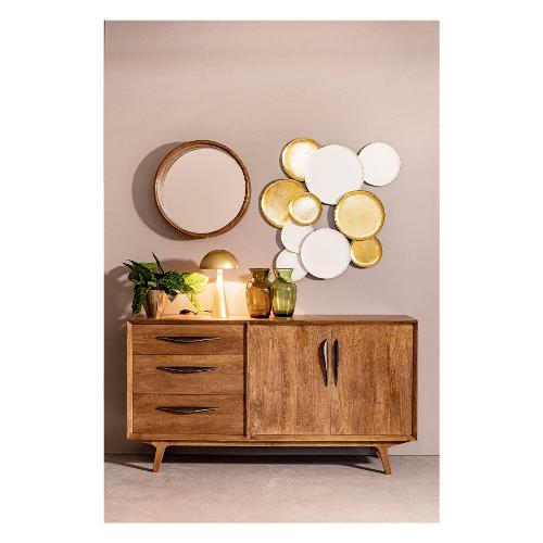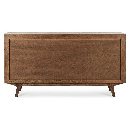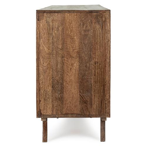 Struttura e gambe in legno di mango con finitura a base d'acqua. Schienale in MDF. Vano porta comprensivo di mensola. Maniglie in acciaio