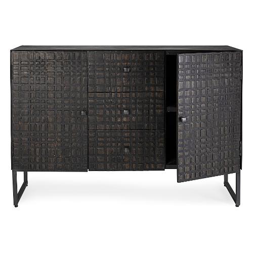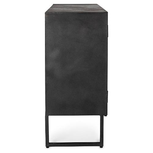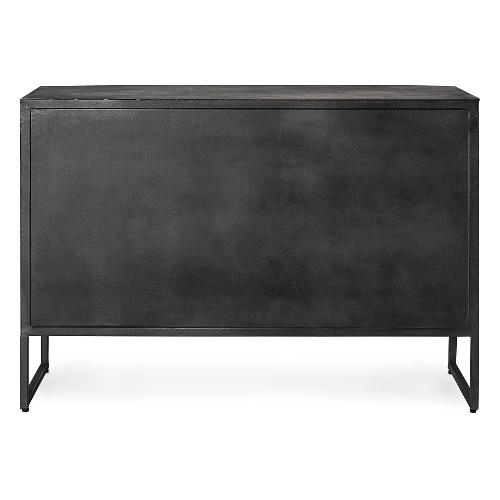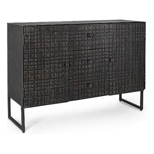 Struttura in acciaio verniciato a polvere epossidica. Cassetti e ante in legno di mango con finitura a base di nitrocellulosa