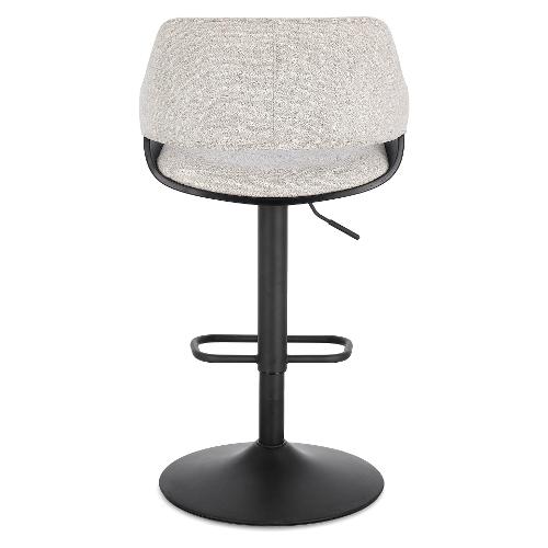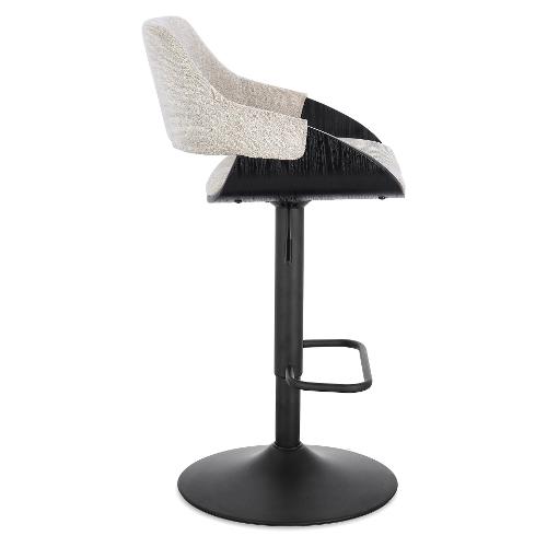 Seduta in compensato impiallacciato legno di pioppo con imbottitura in schiuma poliuretanica. Rivestimento in 100% Poliestere. Seduta girevole 360°. Base in acciaio verniciata a polvere epossidica. Altezza regolabile con sistema a gas