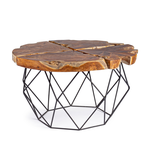 Piano in radici di teak con fintura naturale. Gambe in acciaio verniciate a polvere epossidica. Le forme e le misure create dal legno sono solo indicative, tutti i prodotti saranno diversi l'uno dall'altro