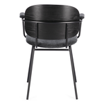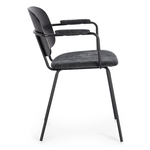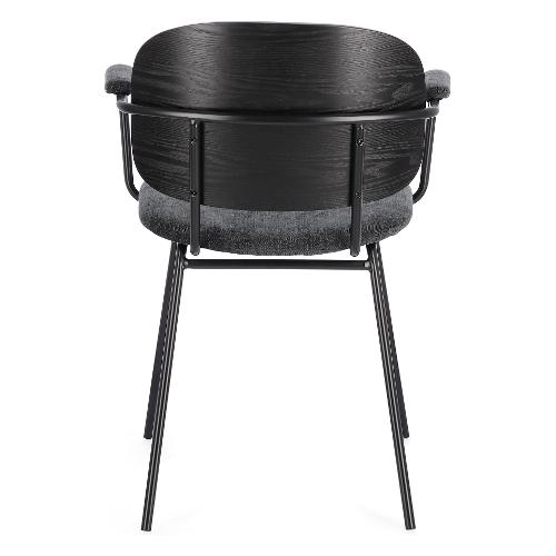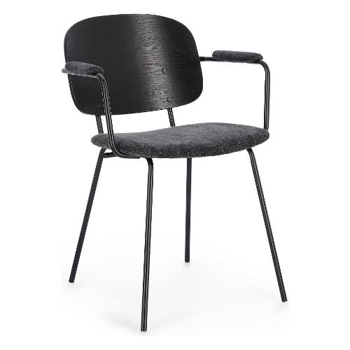 Struttura in acciaio verniciata a polvere epossidica. Schienale in compensato impiallacciato legno di pioppo. Seduta e braccioli in compensato con rivestimento in 100% Poliestere