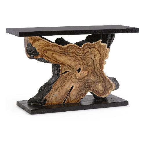 Struttura interna in radici di teak originali. Struttura esterna in legno Suar. Finitura a base di nitrocellulosa. Le forme originali create dal legno sono solo indicative, tutti i prodotti saranno diversi l'uno all'altro, con misure leggermente differenti